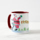 Uma imagem alegre do papai noel que patina com um pinguim.