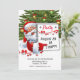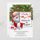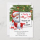 Este convite de Natal apresenta uma árvore de Natal e um Papai Noel alegre convidando seus convidados para a festa de Natal