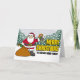 Um cartão de Natal com o papai noel feliz que guardara um saco dos presentes e de uma boneca pequena.