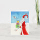 Natal ou papai noel festivo do pai em um casaco vermelho que anda na neve, nos presentes levando e sendo perseguido por três pássaros que tentam obter o cartão de Natal das belas artes das fitas do presente. Pintado excepcionalmente no watercolour e no goauche em um papel textured áspero da aguarela por Sarah Trett.