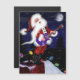 Papai Noel Toca Guitarra em uma tempestade de neve no telhado ligado às luzes de Natal. Boas Festas, Feliz Natal, Papai Noel