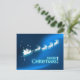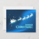 Festa de Natal / convite de janto com ilustração do Papai Noel no seu trenó com renas em fundo congelado de Natal azul. Personalize-o com seu próprio texto ou personalize-o ainda mais se quiser ajustar o layout e o texto ou escolher um tamanho de convite diferente. Este convite também pode ser usado como um Cartões de natal elegante.