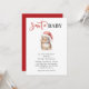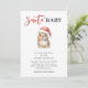 Convite para Chás de fraldas de Natal. Design apresenta um belo coelhinho de Natal vestindo chapéu vermelho de Papai Noel. A frase "Papais noeis Bebê" é escrita na tipografia na moda definindo o tom para uma celebração alegre e feliz. Personalize o convite com seus detalhes.