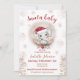 Convite para Chá de fraldas de Natal com o pequeno elefante mais bonito do chapéu de Santa, folhas de ouro falso rosa e flocos de neve. Chá de fraldas do convite para modelo totalmente editável, personalize facilmente o texto. - Kate Eden Art