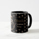 Nome personalizado Olivia Black and Dourado Snowflakes com Padre Natal Mug Papais noeis Faux Dourado Faux Glitter Papai Noel, você pode mudar o nome no seu texto e pode mudar a "Imagem de Texto da Caneca de Natal" na sua foto, Presente de Natal personalizado único
