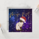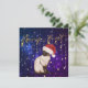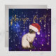 Feriado Brilhante ou cartão de boas-vindas de Natal com um Gato Siamês em um chapéu de Papai Noel em um fundo roxo Facilmente mude as informações para você. Saudações sazonais divertidas e modernas.