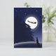Há uma lua de cheio, Papais noeis estão no trenó e voando sobre uma fila de pinheiros lua, um coelhinho fica olhando, tão doce! Você pode alterar a cor do plano de fundo na parte traseira e adicionar texto! Diversão de cartões personalizados no Zazzle! Artº de Cherie(c) 2022