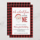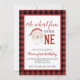 Que divertido, é ser um! Papais noeis de Natal primeiro convite de aniversário com papais noeis de aquarela, natal e xadrez de búfalo.