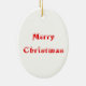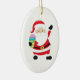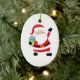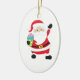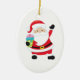 Este ornamento oval de cerâmica apresenta um jollySanta segurando um presente embrulhado em uma mão e acenando alegremente para a outra. o texto no verso lê Feliz Natal.