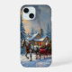 Papais noeis conduzindo um trenó de um cavalo para entregar presentes de Natal em uma pequena cidade