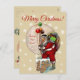 Nada pára Papais noeis na véspera de Natal! Nem mesmo uma chaminé estreita. Não se preocupe, ele vai conseguir. Imagem bonita e vintage de Papai Noel prestes a descer uma chaminé muito estreita.