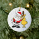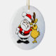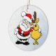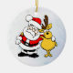 Esta é uma Enfeites de natal com uma aparência divertida, Papais noeis alegres e uma rena feliz com seus braços em volta um do outro desejando um Natal muito feliz e uma estação de férias muito feliz.