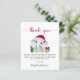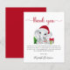 Cartões de agradecimentos de chá de bebê bonitinho, amigável em orçamento, com "obrigado você" em um roteiro na moda vermelho com baloiços e uma aquarela fofa de um bebê elefante com um chapéu de Papai Noel, uma árvore de Natal, uma cana doce vermelha e verde e presentes. Personalize o seu obrigado em uma simples topografia ou deixe vazio para uma nota manuscrita.