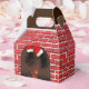 Papais noeis apertando uma chaminé de tijolos.