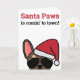 Entregue desejos de férias em estilo com este maravilhoso cartão de Natal com o encanto amoroso de um buldogue francês marrom e bronzeado vestindo um chapéu de Santa e óculos de sol na moda aviador. Esta adorável frenchida está aqui para espalhar a alegria e o espírito festivo aos seus entes queridos nesta época de férias. Papais noeis Paws está chegando à cidade! Quer você esteja enviando para a família, amigos, ou colegas, este engraçado cartão de natal de buldogue francês traz sorrisos e corações quentes. Estão também disponíveis diferentes opções de buldogue francês de cor diferente.