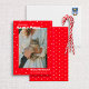 Este cartão com fotos de Natal mostra uma foto do seu gato cercado por uma borda de estampas brancas de pata e estrelas brancas sobre um fundo vermelho com uma punny saudação de Natal lendo "Aqui vem os Papais noeis de patas" e "Feliz Natal!". Este Cartões de foto de Natal é perfeito para o dono ou amante de os animais do animal de estimação.