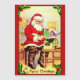 vintage Santa Claus pintando uma casa de bonecas com cartão magnético de saudação de Natal