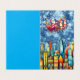 Papai Noel passeia um trenó puxado por duas renas, soprando sobre uma vibrante e caprichosa paisagem urbana com edifícios coloridos. O céu noturno está cheio de flocos de neve e estrelas, criando uma atmosfera mágica e festiva. Digital Art Photoshop CS5