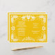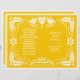 Papel amarelo Picado ama pássaros, programa dobrado de fiesta de casamento. Ele exibe dois pombinhos brancos e um coração de amor com a palavra amor e flores, folhas e pequenos pontos em vermelho sobre fundo amarelo. Este modelo de casamento floral do estilo popular mexicano é perfeitamente personalizável. Use apenas esse tipo de papel à medida que ele se dobra.