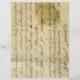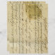 Folha amarrada e com manchas aquáticas de efemera antiga em inglês com escrita manual.