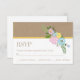 Placa de resposta ou resposta, com flores aqua vindimadas e papel de artesanato, cor-de-rosa-rosa, com artesanato castanho-claro no topo, com uma faixa de ouro e uma ilustração de uma buquê elegante de rosas claro, flores azul-aqua e amarelas no canto superior direito. Esta floral moderna com um modelo de casamento de vintage é perfeita para um país, primavera rústico ou casamento de verão. Escolha um dos nossos tipos de papel com textura para obter melhores resultados.
