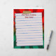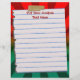 Papel timbrado, com letras vermelhas e texto pronto para o seu nome personalizado ou qualquer texto, em papel de notebook rasgado e alinhado gravado em um design de rajada gráfica legal e divertida de fundo vermelho e verde. Perfeito para aquela lista de Natal e presentes de Natal para crianças, adolescentes, homens e mulheres de todas as idades! Excelente para sua carta de Natal para a família e amigos e excelentes como comprando e tarefas para fazer lembretes de lista também!