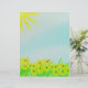 Páginas de scrapbook com céu azul macio, flores amarelas brilhantes e sol.
