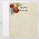 O papel de carta maravilhoso do feriado com ouro da estação do Natal e os ornamento e ramos vermelhos do pinho, com um fundo de uma imagem do papel handmade velho real, está neste papel de cabeçalho da letra do Natal da família. As imagens são dominio público devido aos direitos reservados expirados.