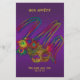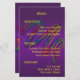 Cartaz do Menu do Partido Mardi Gras. | criamos uma máscara de ouro Mardi Gras, decorada com penas e miçangas de pavão multicoloridas, num lindo fundo roxo profundo, e o texto está numa adorável cor de ouro complementar. Estão disponíveis convites para casamento, cartões acessórios e outros produtos para casamentos e eventos de Mardi Gras.