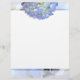 Papel de carta decorado floral azul claro com flor, com flor hydrangea no topo.