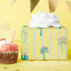 Traga um salto de sol retrógrado aos seus presentes com este charmoso papel de embrulho com cacto fofo e palmeiras amarrados com pequenos arcos cor-de-rosa. Colocada contra listras verdes e pastéis macios sobre um fundo amarelo quente, esta design lúdica é inspirada por Primaveras ensolarados de Palma e vibrações de verão. Perfeito para aniversários, festas de verão, comemorações do deserto, ou adicionar um toque divertido e nostálgico à sua embalagem. O padrão repetitivo dá uma aparência perfeita e na moda para qualquer ocasião. Excelente para amantes da estética retrô, moderna do século médio e peculiar!