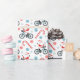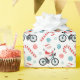 Brincadeira de Natal de bicicleta criativa, com Papais noeis de cartoon cercados por canas doces e hortelãs.