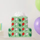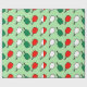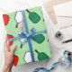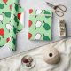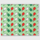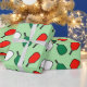 Embalagem de presente de Natal com o tema "Pickleball", que apresenta pás de picleball vermelhas e verdes.