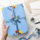 Papel azul-bebê embrulhando com caminhão de depósito de brinquedos e nome personalizado de menino. Ideia bonita para chá de fraldas original ou presentes de primeiro aniversario. Design de plástico doce para a nova mãe ou mãe. Ilustração de lixeira adorável. Também é bom para o Natal ou Férias de Natal.