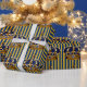 Papel de embrulho azul e dourado para chá de bebê