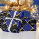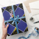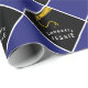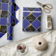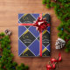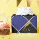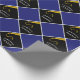 Papel de presente de formatura criativo e decoração de festa com design de chapéu de formatura preto e borla dourada em fundo azul. Edite o texto para adicionar o nome do graduado.
