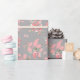 Folhas caprichosas com bolinhas cor-de-rosa num fundo cinza são o papel de presente perfeito para o casamento que a noiva irá adorar