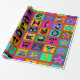 Papel de embrulho de Natal, papel de presente colorido, papel de embrulho de aniversário, vermelho azul amarelo, laranja verde rosa, arte popular tribal, arte popular étnica, arte popular alfabética, papel de embrulho contemporâneo, Virginia Vivier, Vagabond Folk Art, papel de presente.