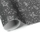 Estrelas, planetas, foguetes e mais nessa visão futurista do espaço. Papel de desenho animado ilustrado com linhas brancas sobre fundo preto.