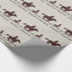 Papel de embrulho com tema cowboy de arame farpado rústico e equitação. Você pode adicionar texto no estilo de fonte e cor se quiser personalizar este papel de embrulho cowboy ocidental marrom.