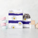 Padrão listrado de cor d'água azul e branca com margaridas brancas.