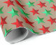 Um papel kraft rústico para o feriado de Natal, com estrelas verdes e vermelhas brilhantes num padrão repetido num papel kraft quente.