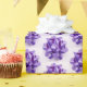 Design de papel embrulhado de Natal ou Feriado de todos os arcos em roxo com uma leve sombra lilás de uma caixa atrás de cada uma.