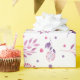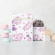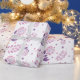 Uma bela variedade de flores roxas em um fundo branco é o papel de embrulho perfeito para presente de casamento que a noiva vai adorar