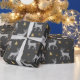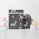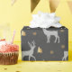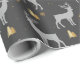 Este delicioso papel de embrulho apresenta um padrão brilhante de cervo elegante, flocos de neve cintilantes e ouros alegres, todos colocados contra um fundo escuro e rico.