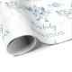 Papel de embrulho de presente de chá de bebê com padrão uniforme floral azul elegante.