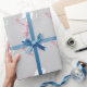 Cinza e papel de embrulho cor-de-rosa com elefante fofo. Personalizável com desejos, nome ou monograma. Boa ideia para presentes de chá de fraldas e primeiro aniversario. Adorável design de bebê com coração. Giftwrap para nova mãe ou mãe ser. Imagem neutra para garotinha. Cor de fundo personalizável. Ou seja, amarelo macio, rosa pastel, roxo, cinza ou azul claro. Escrita elegante.