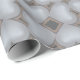 Este papel de embrulho apresenta um padrão repetitivo de azulejo de corações perdidos prateados em torno de um diamante central.