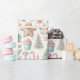 Decorado com ilustrações vibrantes, este papel de embrulho apresenta árvores de Natal, pão-de-gengibre, ornamentos e doces festivos, perfeito para adicionar charme a momentos de doação de presentes de Natal.
