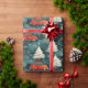 Este papel de embrulho vibrante mostra carros encantadores de cinza e vermelhos dirigindo entre árvores de neve, capturando a essência de uma celebração de inverno aconchegante, ideal para a doação de férias.